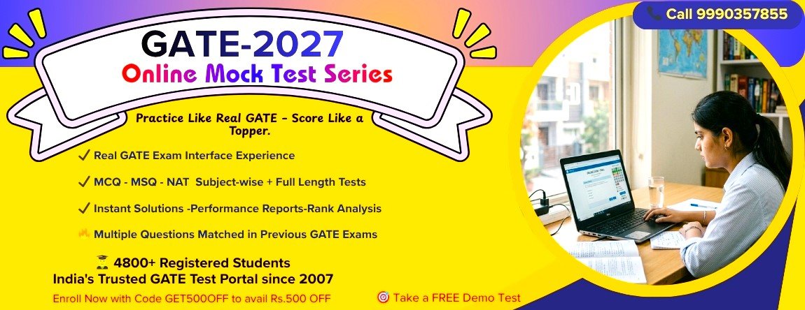 GATE-2027 FREE All India Open Mock Test schedued on π 27 Decβ26 | 3rd-Jan'27 | 10th-Jan'27 Test-Timing: β° 10:00 AM β 1:00 PM | π» Online from anywhere Register Now to Book Your Slot